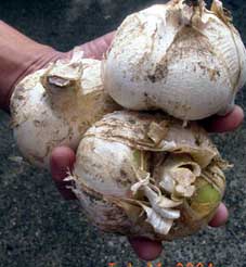 | 折角の連休なのに柏崎の海は残念ながら荒れ模様です。来週は期待したいところです。笠島海岸へ行ってきました。本当は笠島もずくを採っているところを写真に撮りたかったのですが、残念!!でもいよいよ笠島もずく入荷しました。やっとページもアップしました。今年も昨年以上に不漁みたいです。でも海の底の泥岩には、いい笠島もずくがあるそうです。もずく採りの名人矢作さんのお宅を訪問致しました。矢作さんから、もぞくについていろいろ教えて頂きました。もぞくともずく・・・単なるなまりでしょうか?もぞく名人曰く・・・藻に付いたもののことをもずく、深い海の底の泥岩に付いたもののことをもぞくというそうです。先日入荷した出雲崎のもずくと一緒にもずくのページ作りました。 帰りに矢作さんが丹誠込めて作って巨大ニンニク頂いてきました。スライスしてニンニクの唐揚げを作りました。本日のお夕飯はもずくを刺身醤油で頂きました。にんにくともずく・・・とてもマッチしていました(^o^)