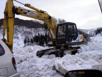 | 民芸品がいっぱい。 | 除雪車も雪に埋まっています。 |